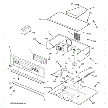 Oven vent box assembly that routes hot air and steam from the cooking cavity. Replace if cracked, damaged, or missing to restore proper ventilation.