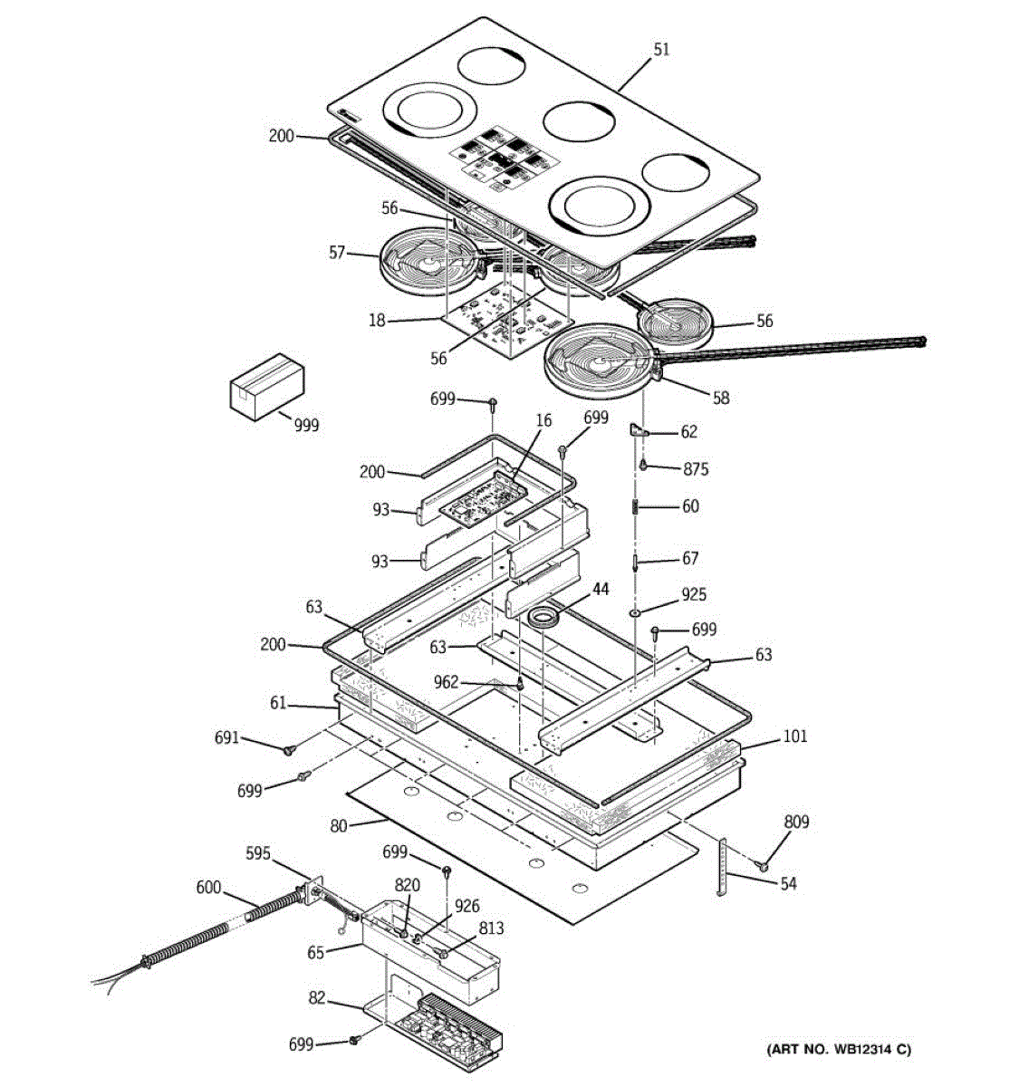 Black glass cooktop surface with stainless trim. Replaces cracked, broken, or damaged main glass top. Direct fit installation for your cooktop.