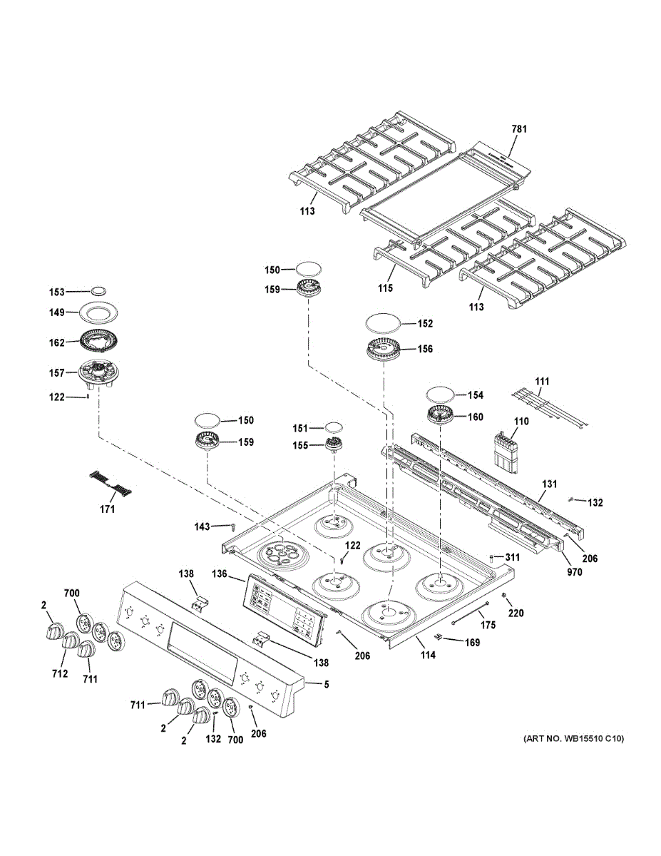 Replace your damaged or worn gas range cooktop surface. This top assembly covers the burner area and completes the appearance of your range.