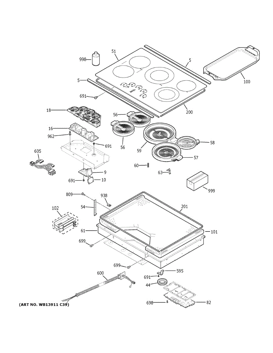 Replace a faulty cooktop wire harness when control panel buttons don't respond or burners won't turn on. Connects control board to sensors and switches.