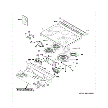 This dual radiant surface element sits beneath the glass cooktop and provides two heating zones to match your pan size. Replacing a failed element restores fast, even heating and proper control on the affected burner.