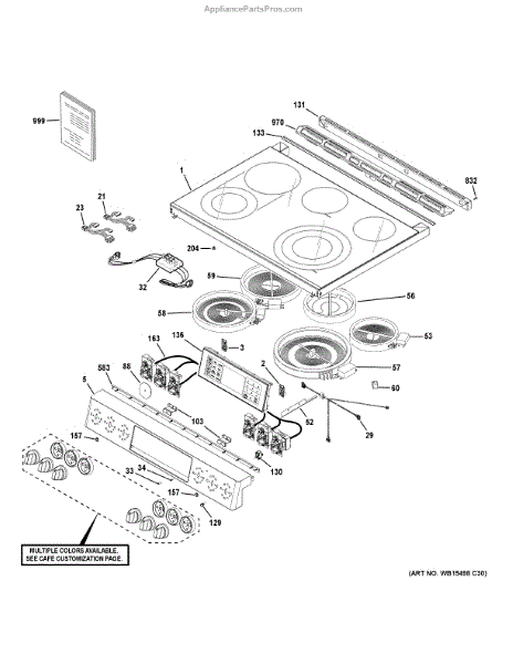 This dual radiant surface element sits beneath the glass cooktop and provides two heating zones to match your pan size. Replacing a failed element restores fast, even heating and proper control on the affected burner.