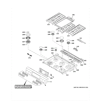 The Grate Asm is an OEM component specifically designed for GE gas ranges. This grate sits over the cooktop burners as well as the mounting hardware to securely install them. It distributes heat evenly while protecting the burners from spills, burns or other potential damage from cookware.