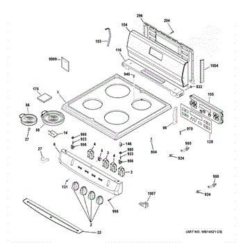 Glass cooktop assembly for ranges. Replaces cracked, chipped, or broken glass surfaces. Installs as the main top cover over burner components.