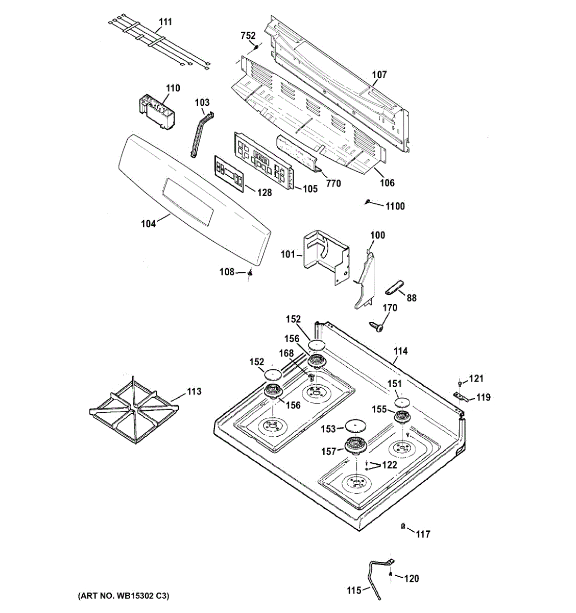 Top support plate for gas ranges. Mounts beneath the cooktop surface to provide structural reinforcement. Replace if cracked, bent, or damaged.