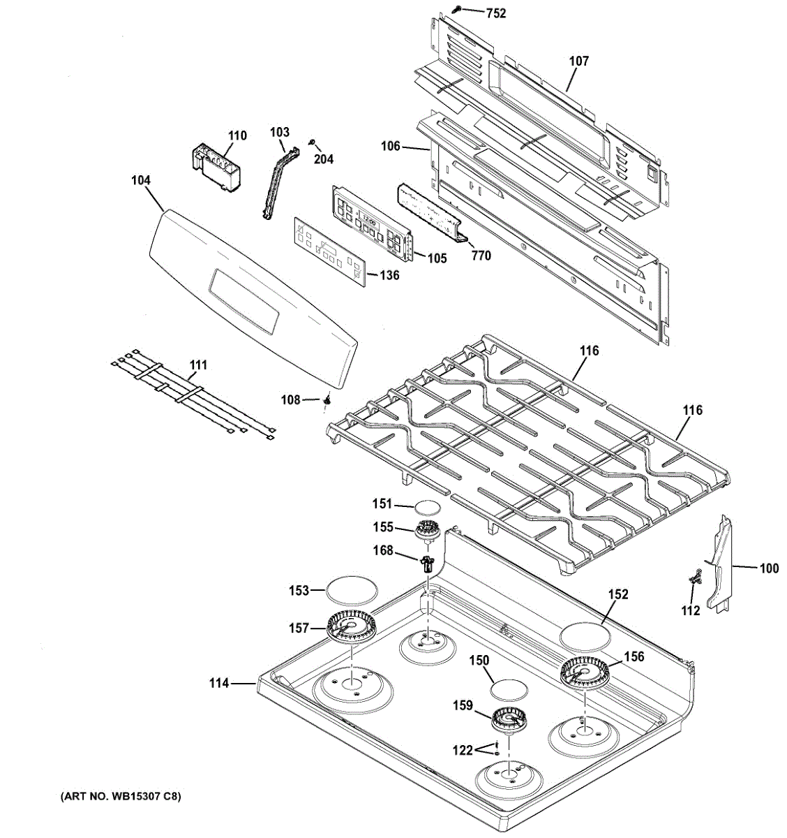 Upper back cover panel for gas ranges. Protects internal components and completes the exterior finish. Replace if cracked, damaged, or missing.