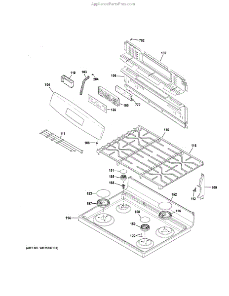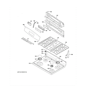 The Grate Assembly is an OEM component specifically designed for GE gas ranges. This assembly includes the metal grate that sits above the burners on the cooktop surface.