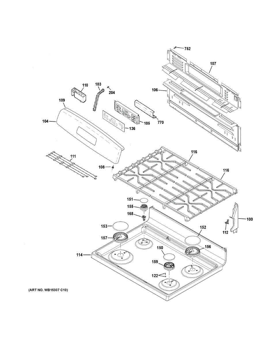Parts for Ge JGB645SEK1SS: Control Panel & Cooktop Parts