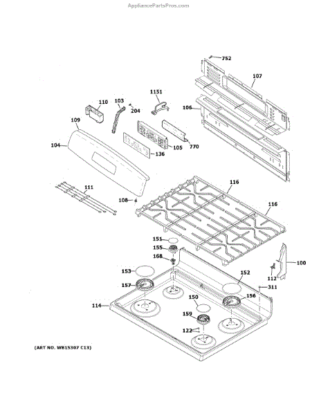 Rangetop panel and bracket assembly for gas ranges. Replaces cracked, damaged, or worn top panels. Includes mounting brackets for secure installation.