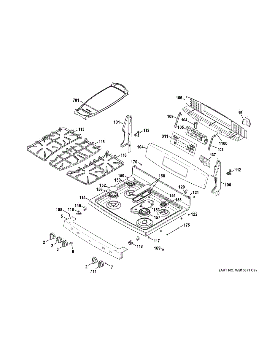 Control panel housing assembly for cooktops and ranges. Replaces cracked, broken, or damaged housing that protects control interface components.