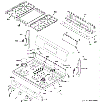 Parts for Ge JGB860DEJ3BB: Control Panel & Cooktop Parts