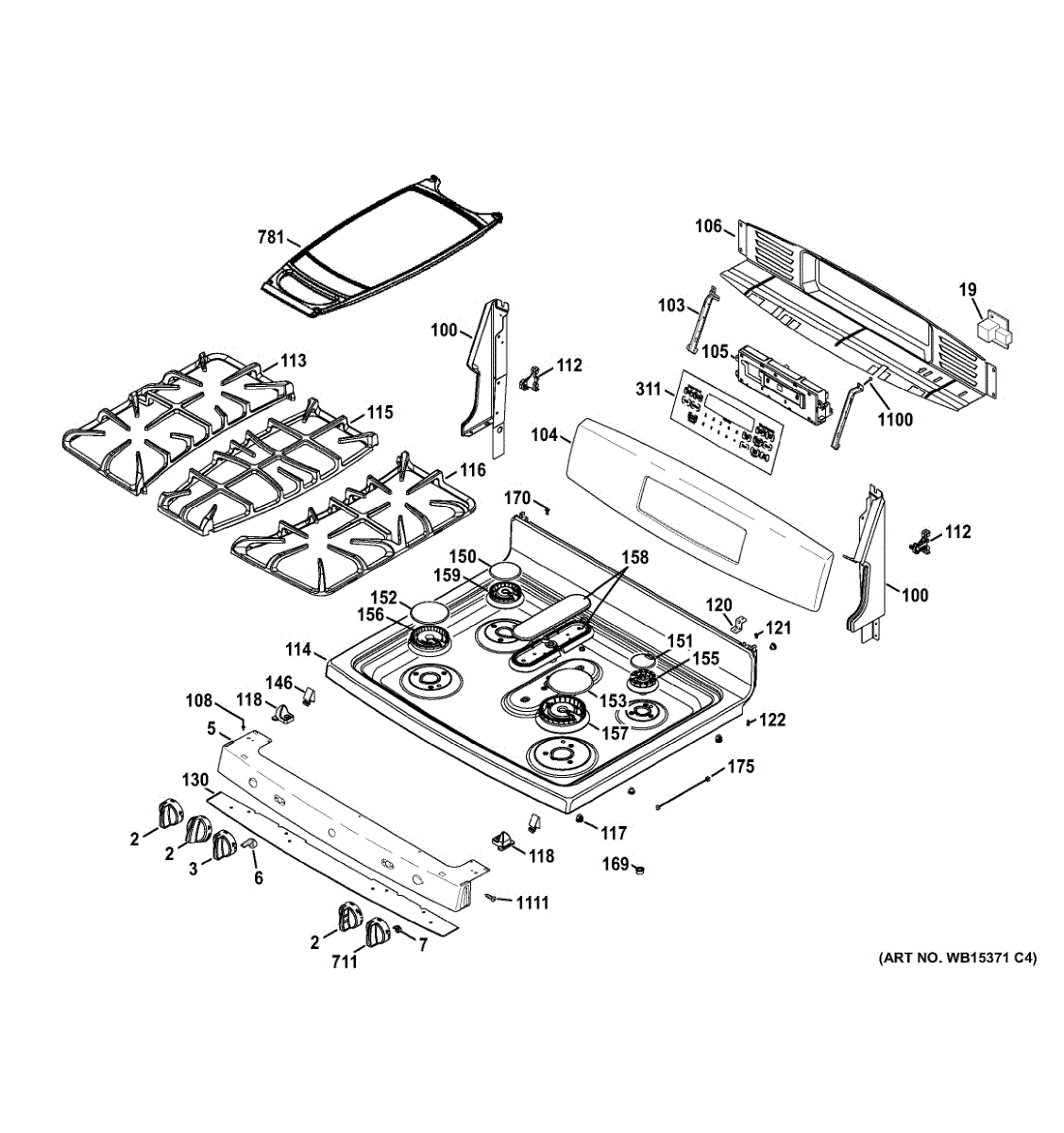 Control panel housing assembly for cooktops and ranges. Replaces cracked, broken, or damaged housing that protects control interface components.