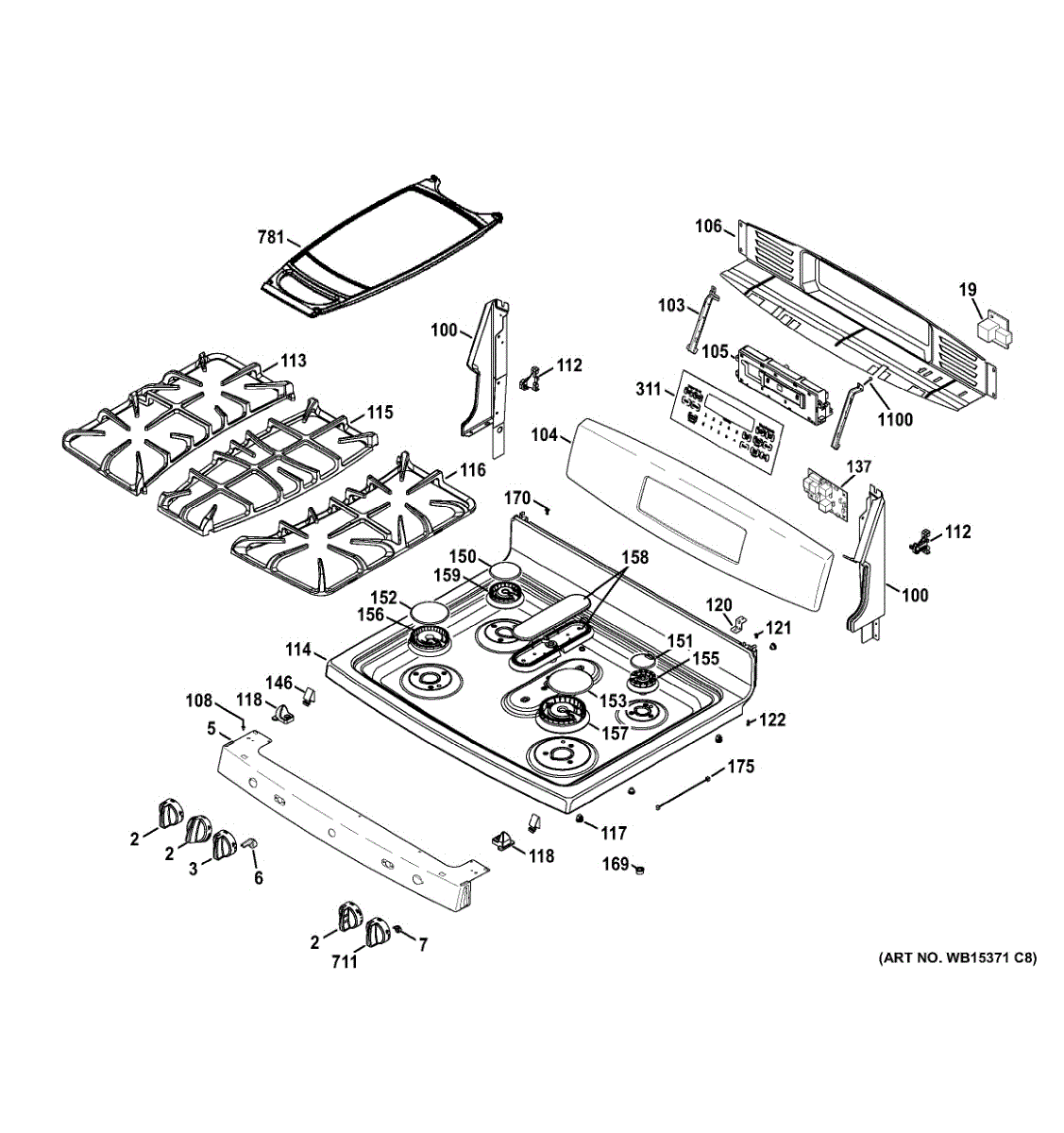 Control panel housing assembly for cooktops and ranges. Replaces cracked, broken, or damaged housing that protects control interface components.