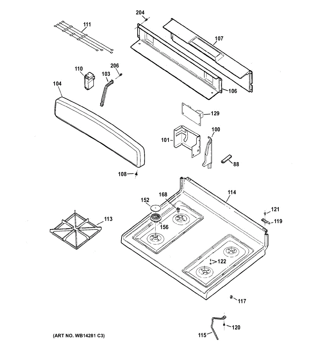 Cooktop surface assembly for gas ranges. Installs on top of the range body to provide the cooking surface. Replace if cracked, chipped, or damaged.