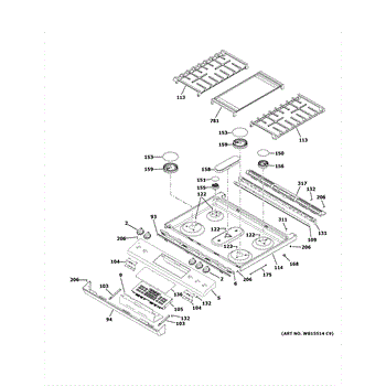 Parts for Ge JGS760BP1TS: Control Panel & Cooktop Parts