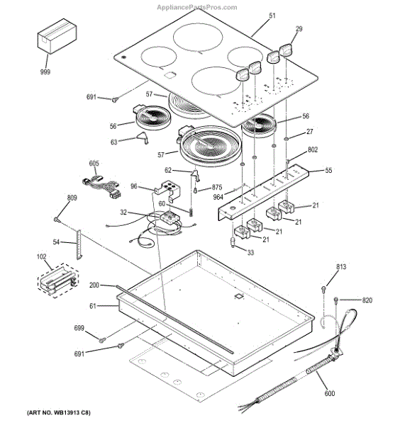 The 8-inch Haliant Element is an OEM replacement part for GE ranges. This component is located beneath the glass surface of the stove and is responsible for heating up the cooking area. It glows bright red at its highest setting, providing the necessary heat for cooking or boiling. The 8-inch size indicates its diameter, making it suitable for larger pots and pans.