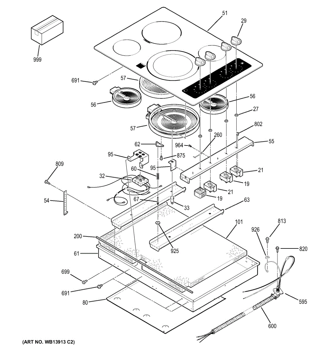Replace your cooktop's main glass top assembly if the surface is cracked, shattered, or damaged. This glass top covers the burner elements and forms the cooktop's cooking surface.