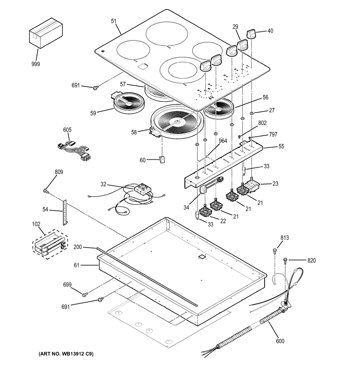 Retainer wire secures internal cooktop components. Replaces worn, broken, or missing wire that no longer holds parts in proper position.