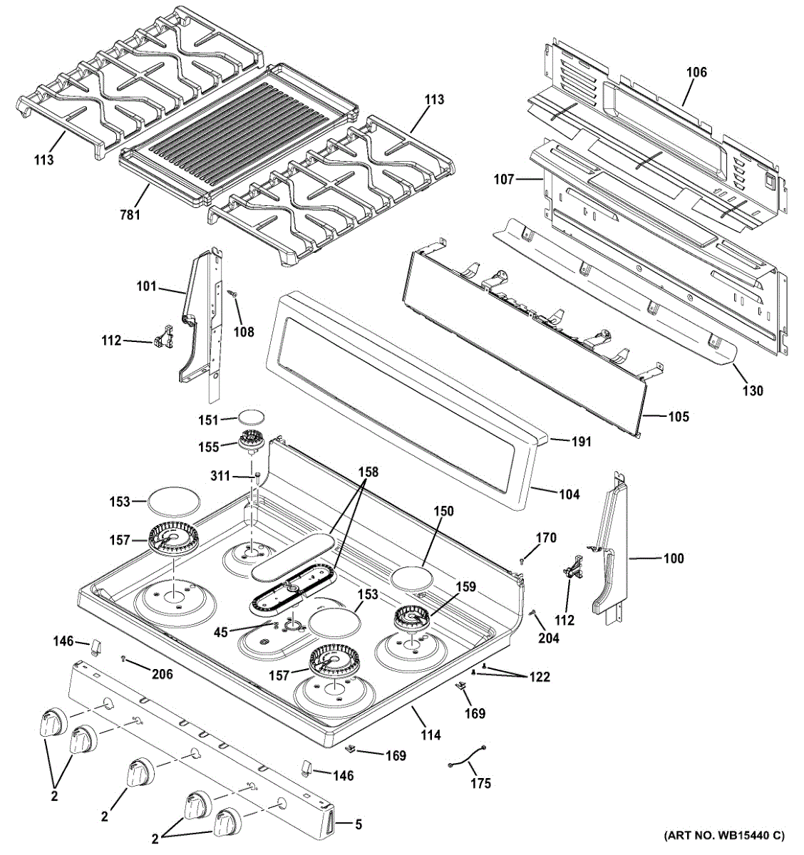 Secures the cooktop to the range frame, ensuring stability and proper alignment. Replace if the original bracket is cracked, broken, or missing.