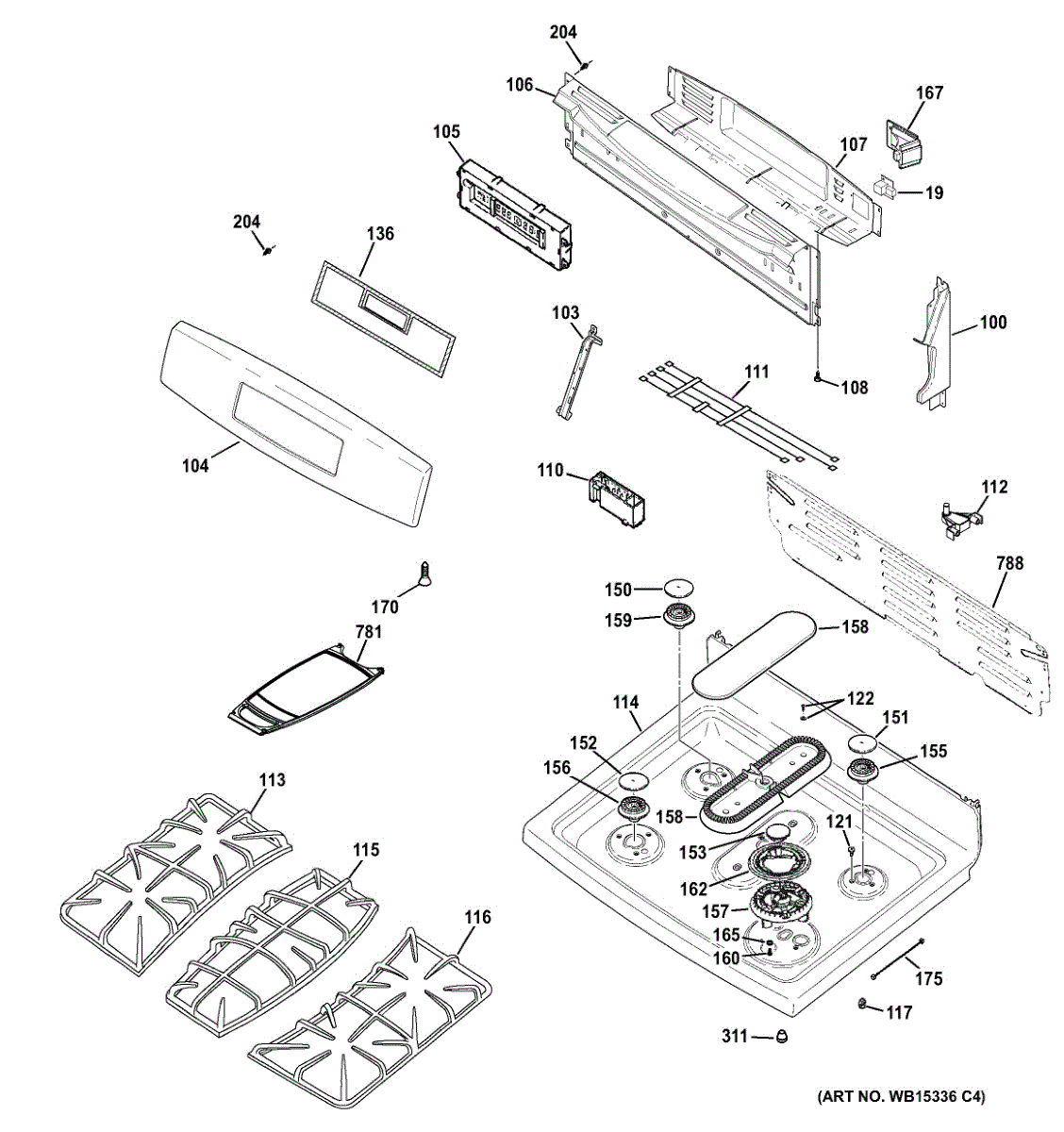 Cast iron grate that supports pots and pans over the burner. Replaces a cracked, broken, or missing cooktop grate to restore a stable cooking surface.