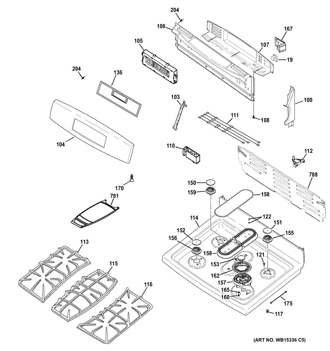 Cast iron grate that supports pots and pans over the burner. Replaces a cracked, broken, or missing cooktop grate to restore a stable cooking surface.