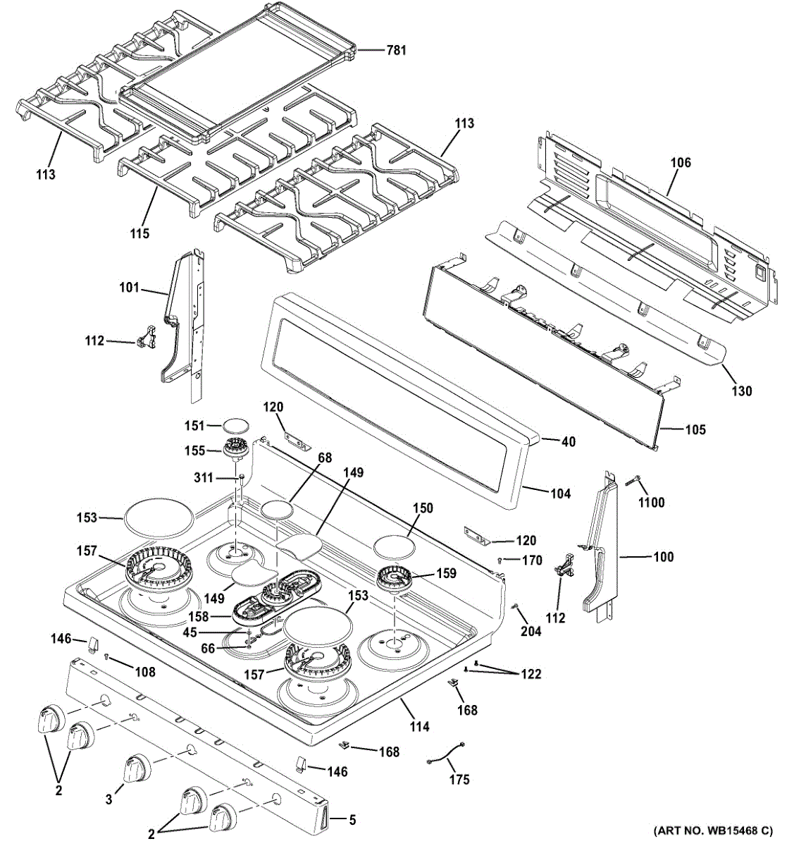 This backguard eyebrow is the top trim piece that finishes the range's control panel area, restoring appearance and protecting the backguard edge from spills and heat. It provides a clean factory look for worn or damaged trim. What it does: