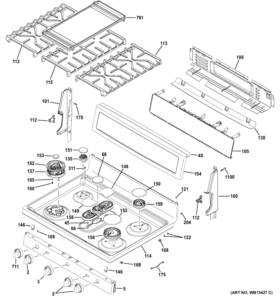 Rangetop and bracket assembly for ranges. Includes the cooking surface and mounting brackets. Replace if rangetop is cracked, damaged, or worn.