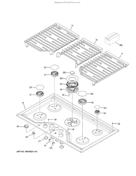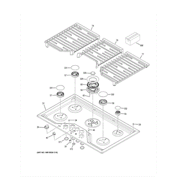 The GRATE (Right) is an OEM component specifically designed for GE gas cooktops. This grate sits over one of the cooktop burners and serves as a durable, heat resistant surface for cooking pots and pans.