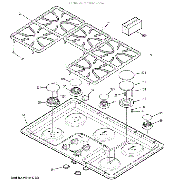 Parts for Ge PGP966DET4BB: Control Panel & Cooktop Parts