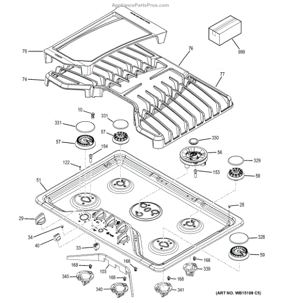 Replace a cracked, warped, or damaged cooktop surface that causes uneven burner support. This maintop assembly restores flat cooking area and proper grate fit.