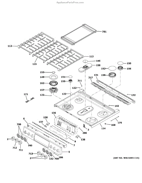 Trim kit for electric and gas ranges. Installs around the cooktop or control panel. Replace if cracked, discolored, warped, or missing pieces affect appearance.
