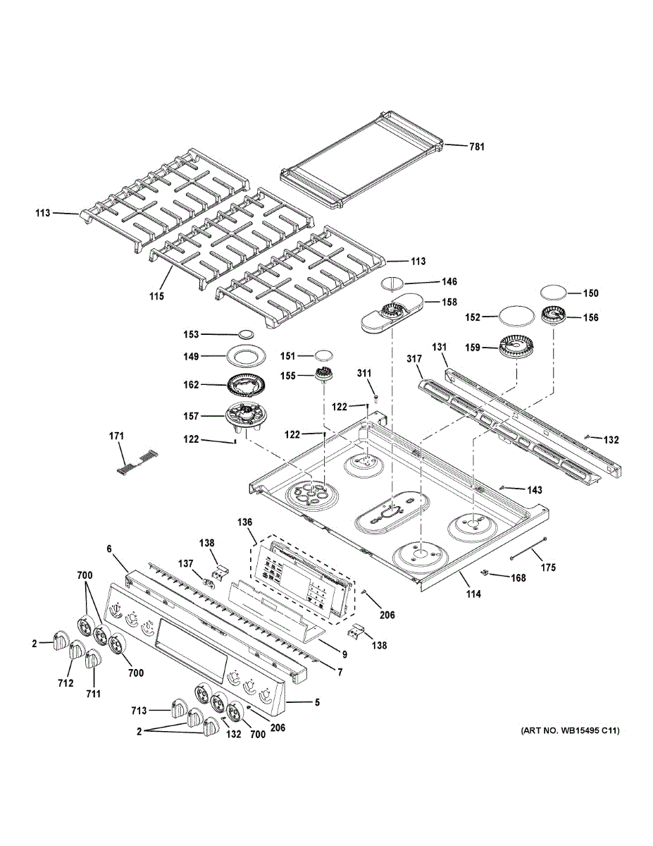 Trim kit for electric and gas ranges. Installs around the cooktop or control panel. Replace if cracked, discolored, warped, or missing pieces affect appearance.