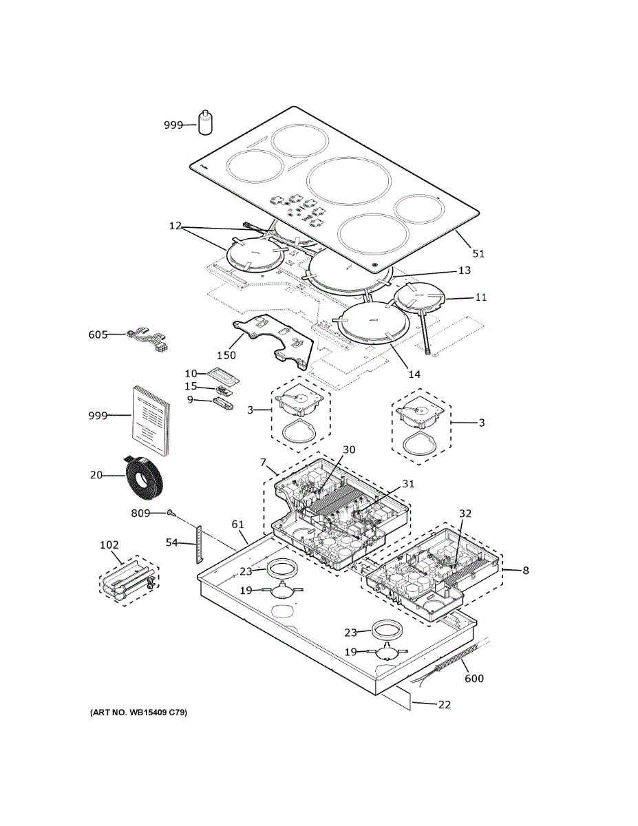 Replaces cracked or damaged cooktop glass surface and surrounding trim. Restores safe, finished cooking area when original is broken or chipped.