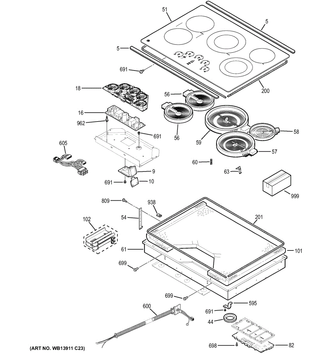 Replace your cooktop's cracked or damaged glass cooking surface with frame. This assembly installs as the main top surface when the original is broken.