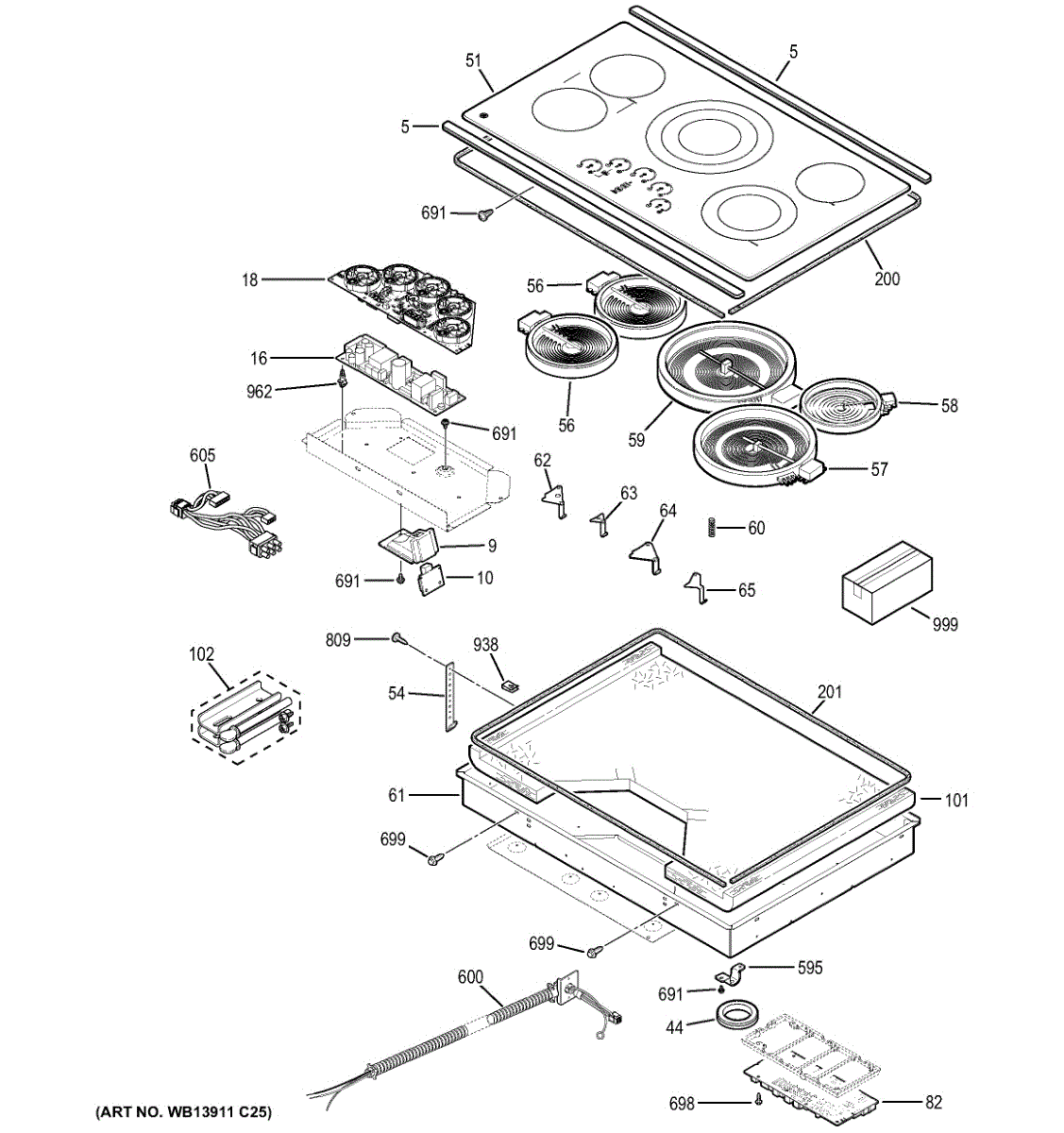 Trim assembly for electric cooktops. Installs around the cooktop perimeter to create a finished edge. Replace when cracked, chipped, or discolored.