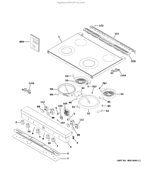 This dual radiant surface element sits beneath the glass cooktop and provides two heating zones to match your pan size. Replacing a failed element restores fast, even heating and proper control on the affected burner.
