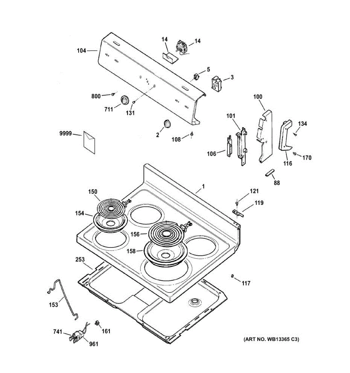 White metal cooktop panel for electric ranges. Replaces chipped, cracked, marred, or discolored main tops. Direct fit surface component for your range.