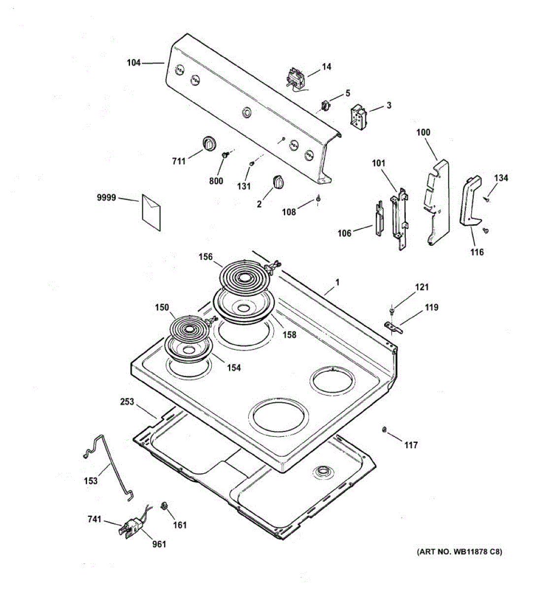 White metal cooktop panel for electric ranges. Replaces chipped, cracked, marred, or discolored main tops. Direct fit surface component for your range.