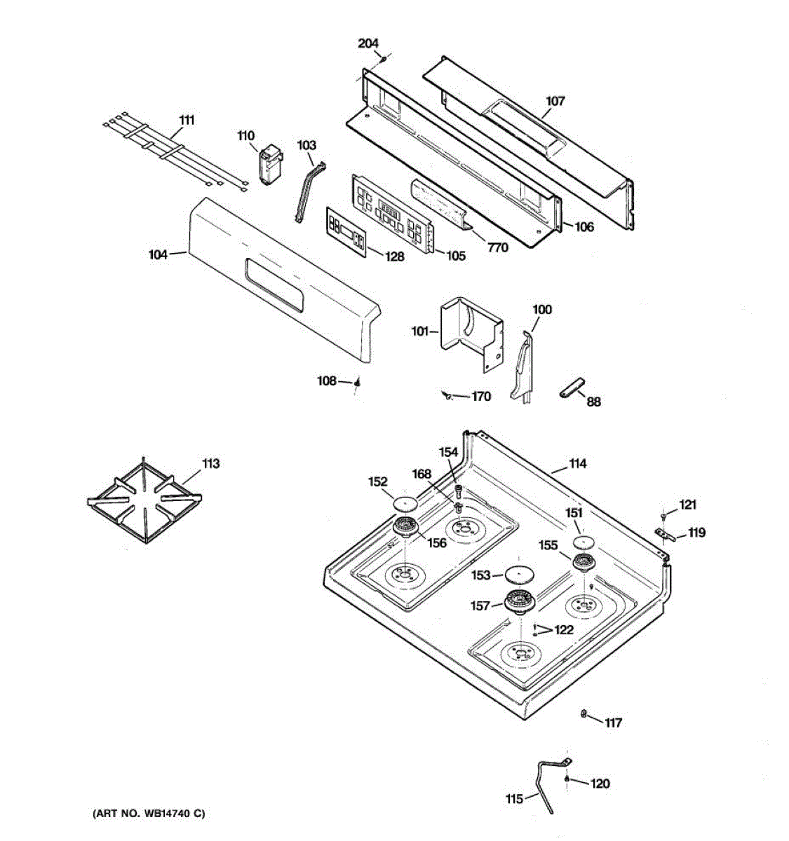 Top support plate for gas ranges. Mounts beneath the cooktop surface to provide structural reinforcement. Replace if cracked, bent, or damaged.