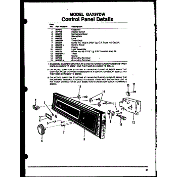 Parts for Amana GAX95DW-OA/MN02: Control Panel Details (Gax97dw / Mn01) (Gax97dw / Mn02) (Gax97dw / Mn03) Parts