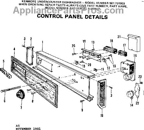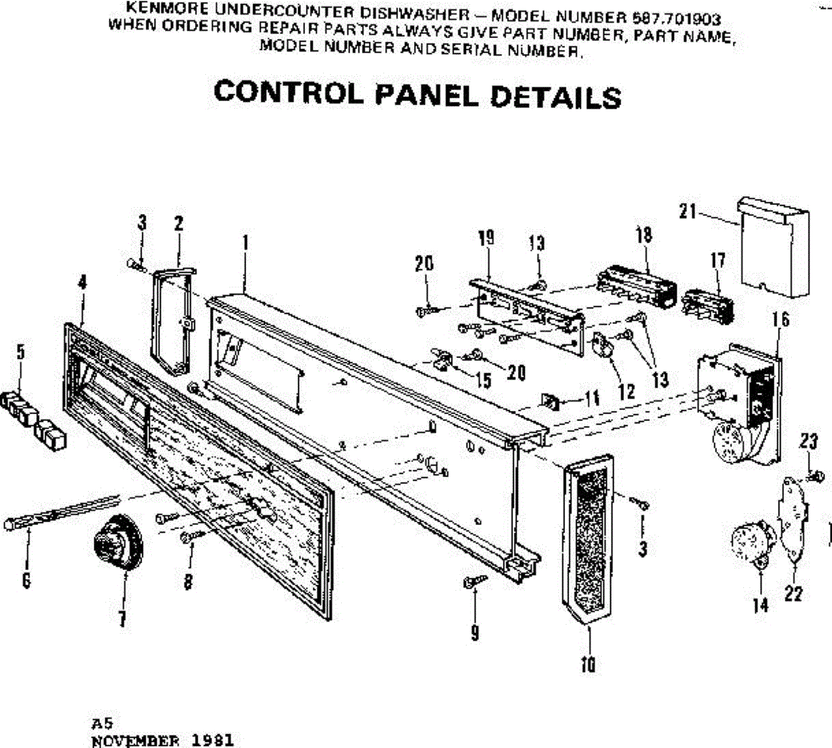Parts for Kenmore 587.701903 (587701903, 587 701903): Control Panel Details Parts