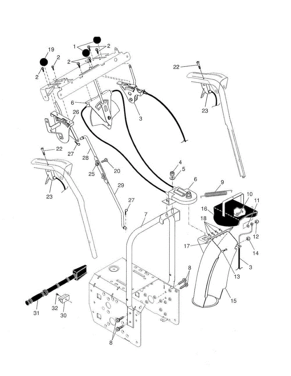 Control cable for snow blowers. Connects operator controls to engine mechanisms. Replace if cable is frayed, broken, kinked, or won't engage properly.