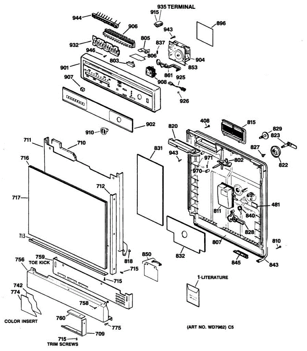Seals dishwasher door to prevent leaks during wash cycles. Replace if water leaks from door sides or bottom, or gasket is brittle. Press-in installation.