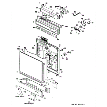 Decorative trim piece for dishwasher exterior panels. Replaces worn, cracked, or missing trim that affects appliance appearance and finish edges.