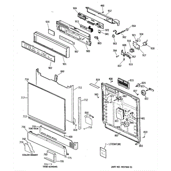 The Detergent cup cover is an OEM component for GE dishwashers. It serves to protect the detergent cup assembly while allowing for easy access. Made of durable plastic, the cover clicks securely into place during operation to prevent accidental opening.