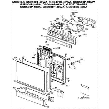 Parts for Ge GSD585S-48BA: Control Panel And Door Parts