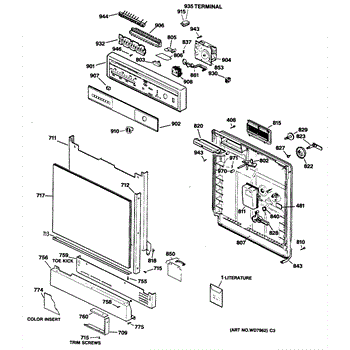 The Fill Cap Assembly is an OEM part for GE dishwashers. This assembly includes the cap that covers the opening where rinse aid or other additives are poured into the dishwasher. It ensures that the additives are securely contained and properly dispensed during the wash cycles, contributing to effective cleaning and drying.