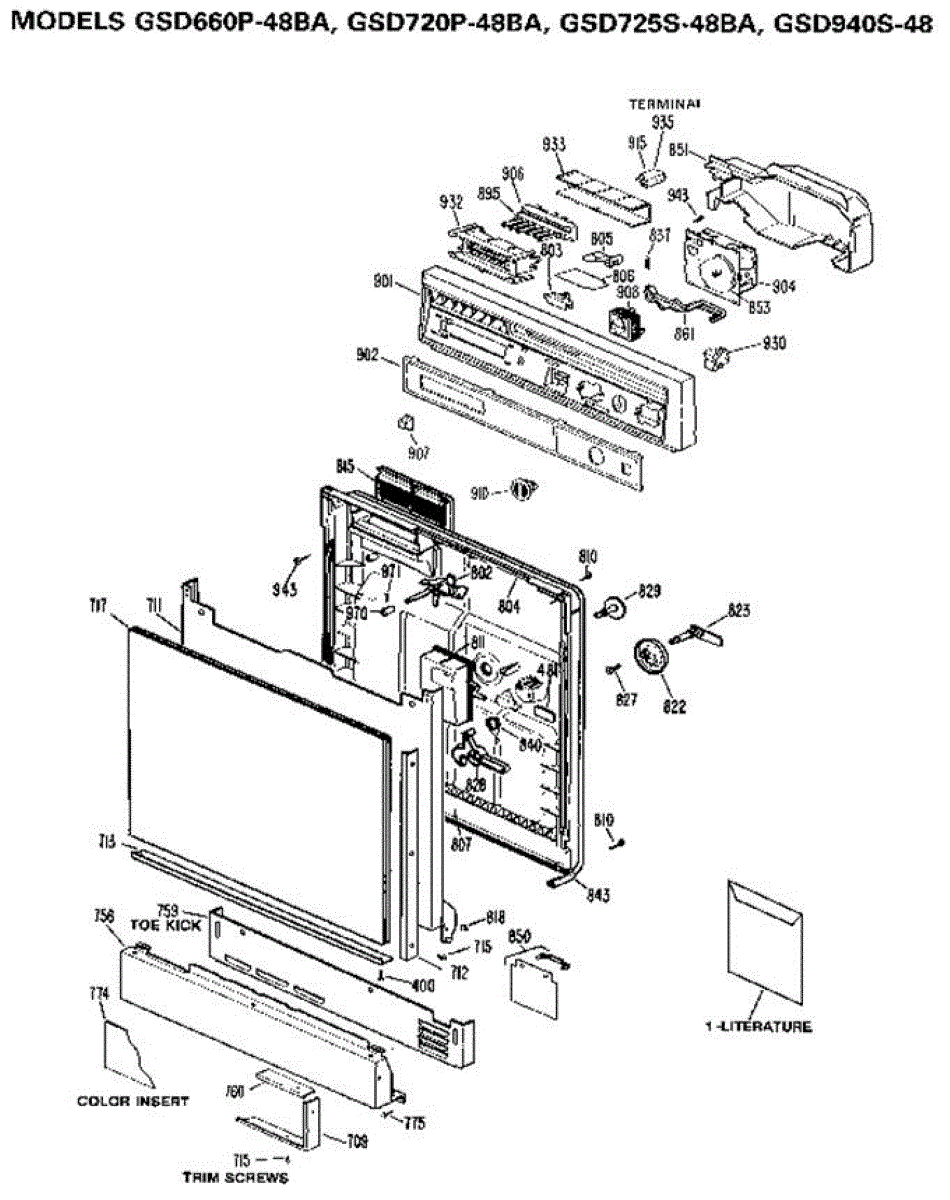 Parts for Ge GSD720P-48BA: Control Panel And Door Parts