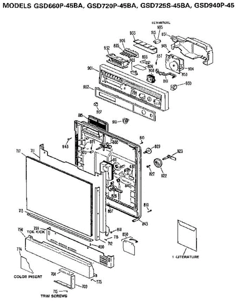 Parts for Ge GSD940P-45: Control Panel And Door Parts