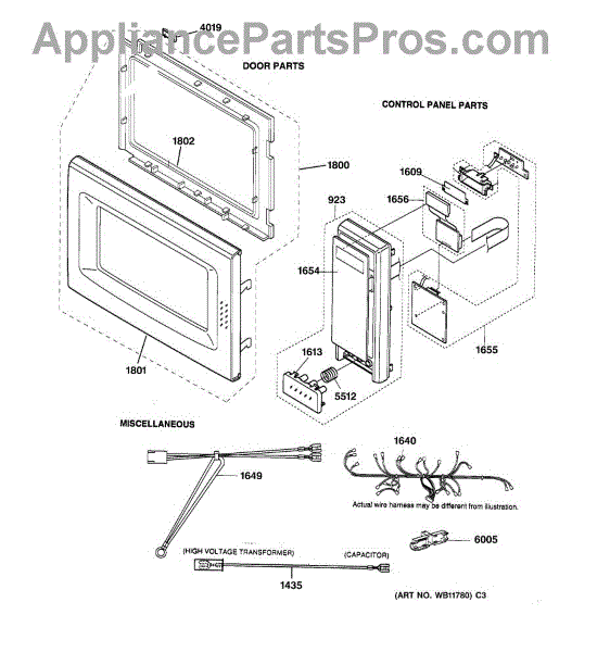 Parts for Ge JE1050GA01: 01 - Control Panel, Door & Misc. Parts